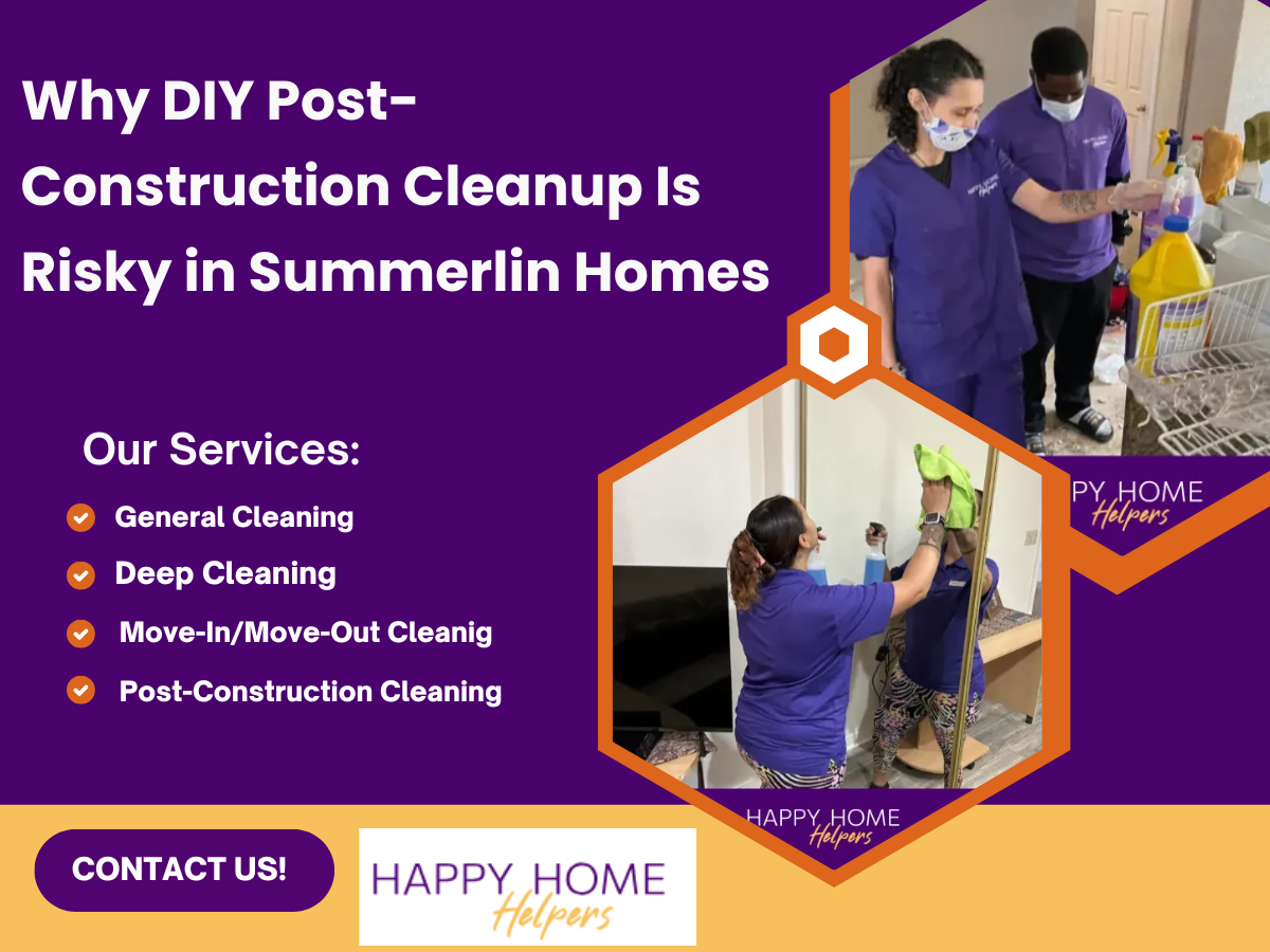 Here’s why DIY post-construction cleanup is risky, especially in homes throughout Summerlin, and why Happy Home Helpers is the trusted choice for thorough, safe, and efficient cleaning.